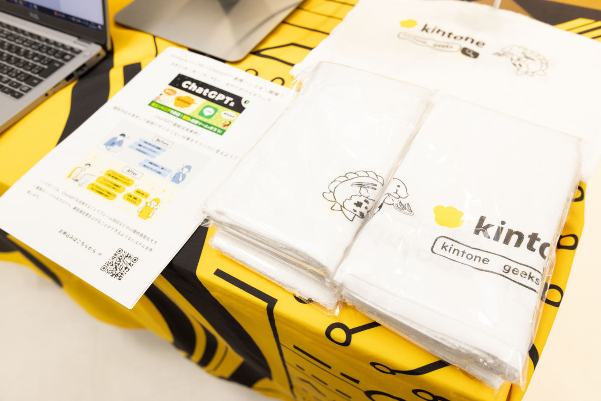 kintone DevRelチームはこのイベントでブースを設けて、同人誌で案内されているカスタマイズのデモを展示していました。