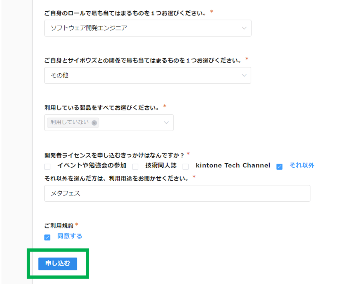 今回のキャンペーンのために取得したkintone開発者ライセンスはそのまま1年間利用することが出来ます。また、キャンペーンに参加しなくても普段からエンジニアは無料でkintoneの開発者ライセンスを取得することが出来ますので、是非この機会に申し込んではいかがでしょうか。