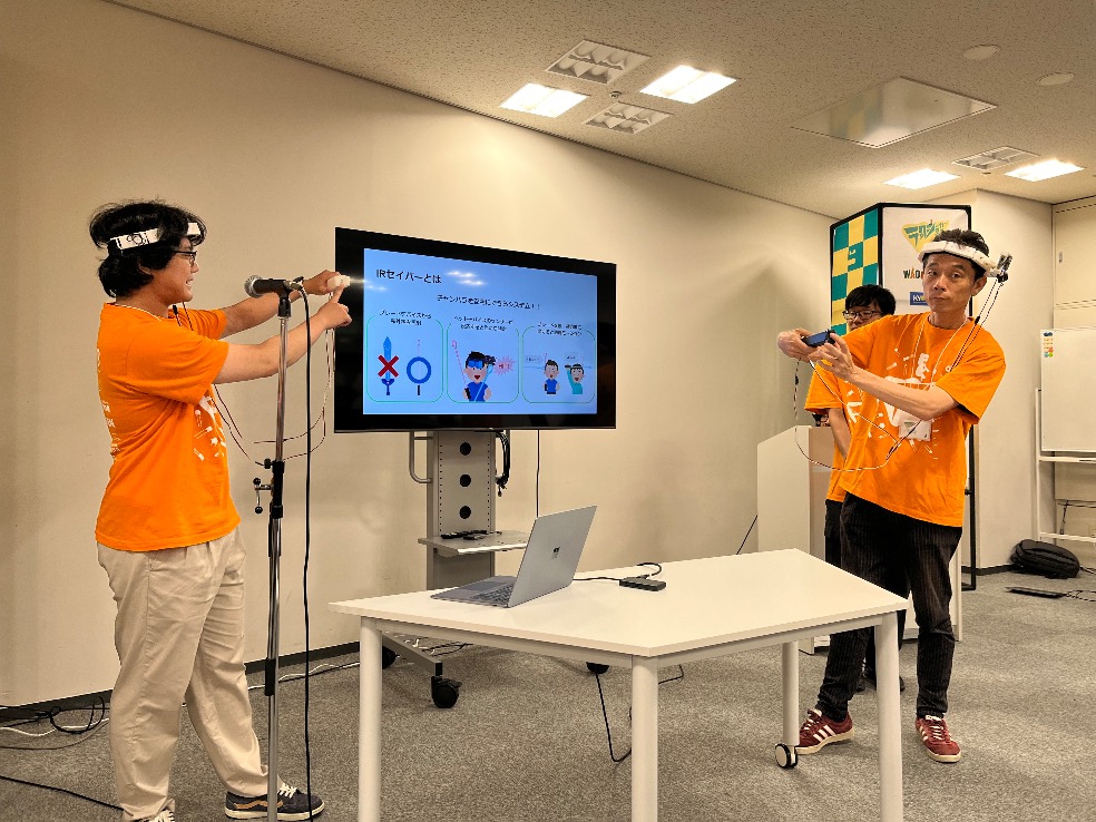 ブレードデバイスはM5StickC Plus2で制御され、赤外線を照射します。プレイヤーが取り付けたヘッドデバイスをSONY Spresenseで制御し、赤外線センサの当たり判定実装されています。Jetson Nano を使って骨格検出や姿勢推定などをし、攻撃や防御モーションを判定します。Raspberry PiとXBeeでゲームの進行と通信が行われ、対戦スコアと順位などがkintoneに登録される仕組みです。